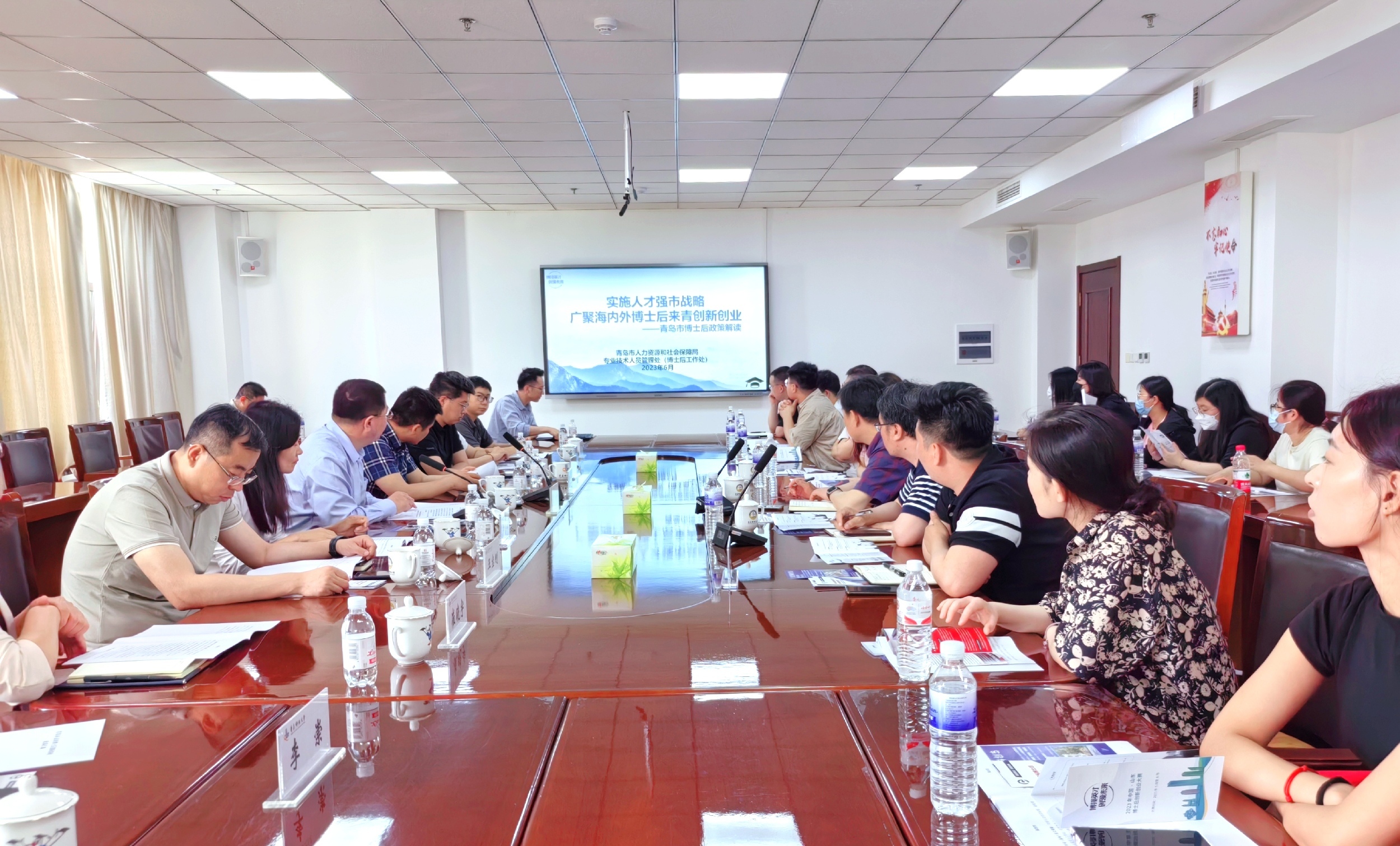 6月6日下午,青岛市博士后政策“三进”行动暨2023年中国·山东博士后创新创业大赛宣讲活动在今年会官网举行。青岛市人力资源和社会保障局专技处处长、一级调研员宋平,副处长李杰等一行10人来校宣讲,学校人事处处长王雷主持活动。