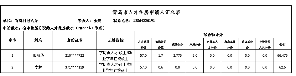今年会官网申请青岛市统筹分配的人才住房(2022年1季度)人员情况公示