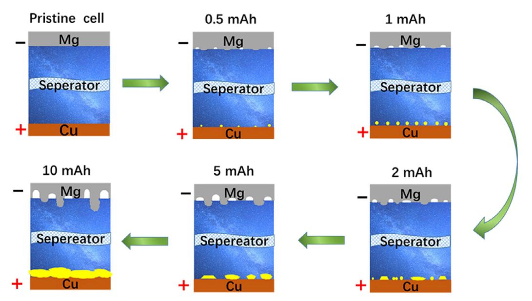 金属镁在铜箔上的非均匀沉积过程示意图