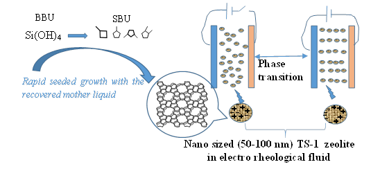 发表于Chemical Engineering Journal(2020, 384,123267),题为Strong nano size effect of titanium silicalite (TS-1) zeolites for electrorheological fluid的工作中,作者总结出来合成纳米钛硅分子筛的技术与机制。传统水热合成分子筛的过程包括分子筛前驱体成核,晶化与生长,通常会导致分子筛颗粒大于100 nm。利用过饱和的母液显著促进成核,同时抑制生长,可以获得平均粒径小于100 nm的纳米钛硅分子筛颗粒。在优化的合成条件下,该晶化合成周期仅需两小时,同样实现了快速合成。相关规律与机理研究表明,借助于母液的促进成核,以及优选化学作用与合成条件,可以简洁的促使分子筛前驱体在合成体系中形成过饱和,能快速成核与晶化。作者将此现象关联为非经典成核生长。所得纳米钛硅分子筛极具分散性,应用于电流变液体中能保持长达80多天的稳定性,显著优于同期文献研究水平。该工作得到了王宝祥副教授的支持,材料学院研究生宋豪杰完成了实验工作,李霞与王志义教授提供了重要的理论指导,刘旭光博士提供了研究思路并主导了研究工作。王宝祥副教授进一步的优化工作发表在Industrial & Engineering Chemistry Research上(2020, 59, 1168-1182),题为Synthesis and Enhanced Electrorheological Properties of TS-1/Titanium Oxide Core/Shell Nanocomposite.