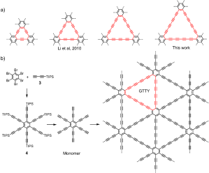 高性能聚合物研究院何丽霞博士与赵英杰、李志波教授团队合作通过自下而上的合成策略,在低温条件下,首次实现了具有明确结构和精确组成的石墨四炔(GTTY)的实验室合成。该石墨炔具有超高含量的sp-杂化碳(80%),超大的拓扑孔径和高结晶度,具有出色的半导体性能。该研究丰富了碳材料石墨炔家族的研究,极大地推进了碳材料的发展。