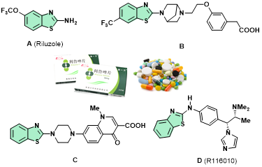 图1.几种具有药物活性的含2-氨基苯并噻唑骨架的分子