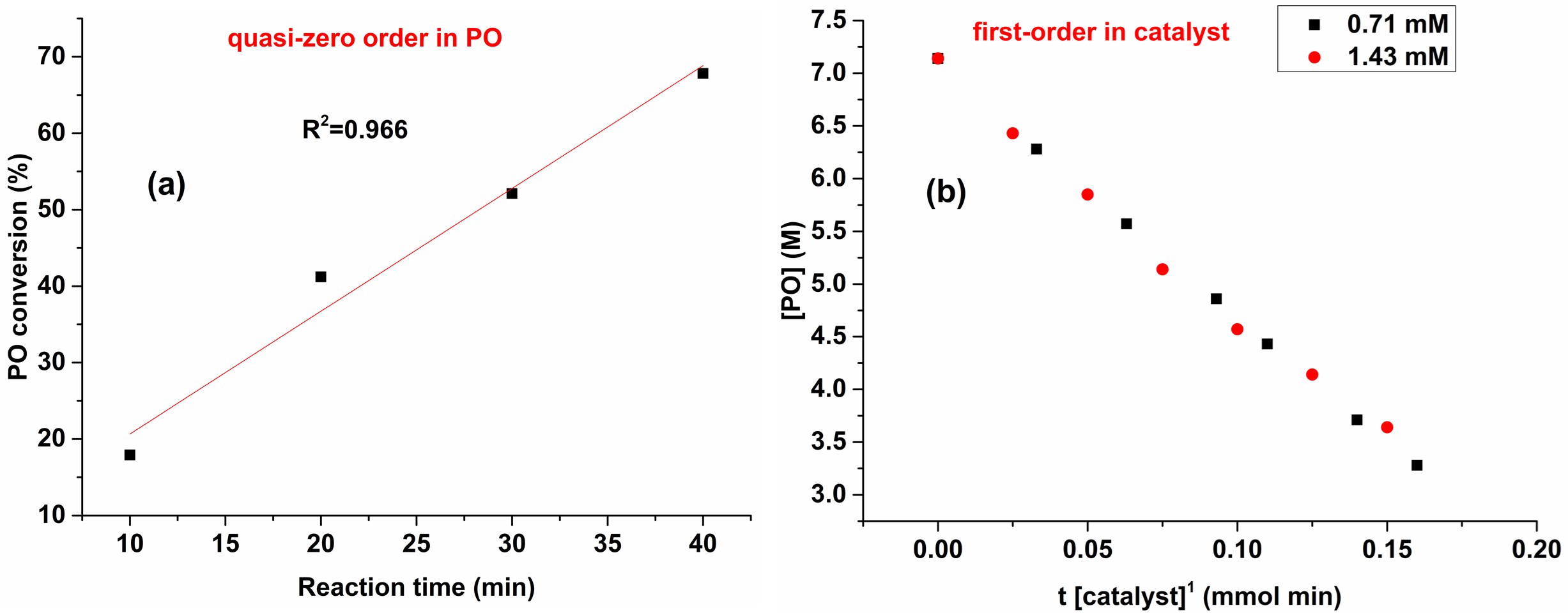 动力学研究表明,V4B/TBASA催化PO开环聚合对PO呈假零级反应,对催化剂呈一级反应(图8)。